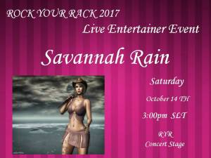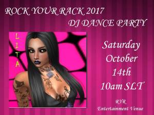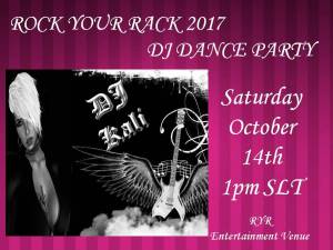 Rock Your Rack 2017 has it’s final Day on Saturday, October 14th! There is so much going on to wind up the event – you won’t want to miss a single second of this day! The amazing one-of-a-kind item Silent Auctions close today at 4pm SLT! There are some great items that can be yours and only yours! Don’t miss out!