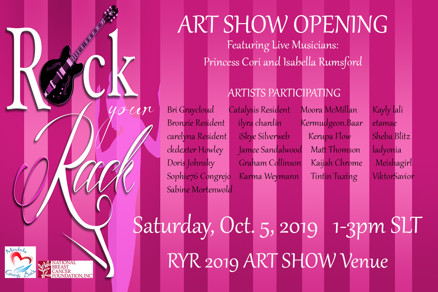 The 2019 Art Show is amazing! You don’t want to miss this outstanding collection of Second Life’s top artists on display in one place. All of them have put out fantastic artwork to enjoy and purchase to support the cause. Join us on the Art Show Venue stage for 2 hours of amazing music from Princess Cori and Isabella Rumsford on Saturday, October 5, 2019 starting at 1pm SLT as we officially open the art show to the public.