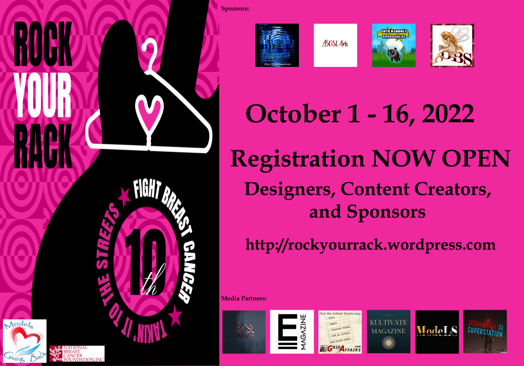Rock Your Rack 2022 is on its way and we are Takin’ It To The Streets this year in a very fun way! We are now open for registration for Designers, Content Creators and Sponsors for our October 2022 Event! Visit the Designer page on the right hand side for all the details and the link to register!