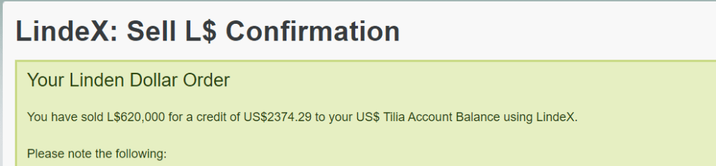 Lindex Conversion to USD: $2255.58 USD in the process of making it out of SL as of Monday, October 17, 2022