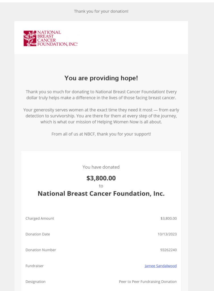 1. Awesome job once again. EXCELLENT fund raising event thanks to Jamee, Matt and ALL who participated, hosted, organized, built and promoted. Together we are POWERFUL!