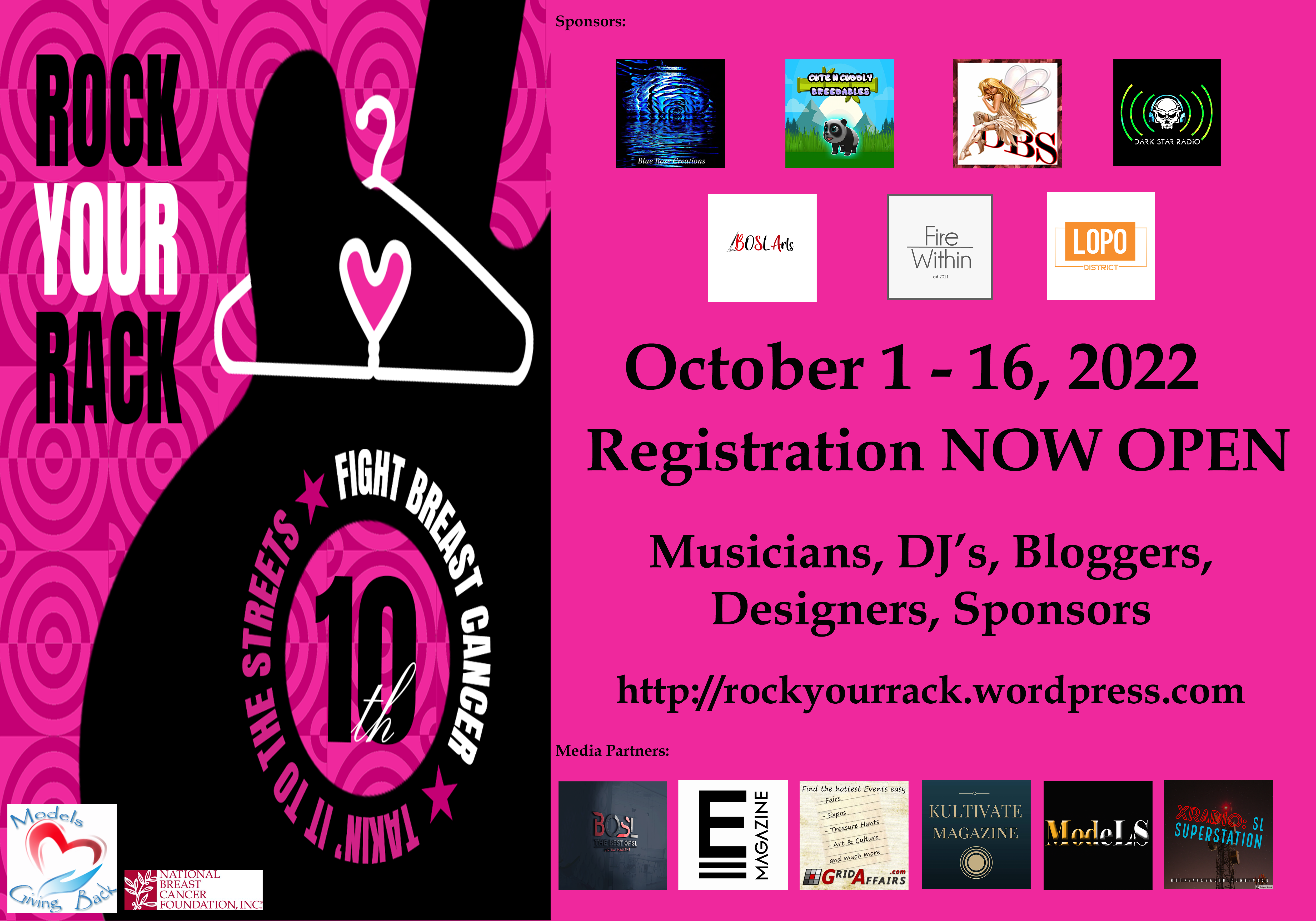 ARTISTS! We still have room for 2D and 3D artists to be a part of the Rock Your Rack 10th annual Art Show! Join the 30+ artists already signed up to be a part of this year’s event. We have a full line up of music in the Art Show area as well during the event and we want you to help us take it to the streets as we get the word out for early detection to knock out breast cancer in it’s tracks and increase survival rates!